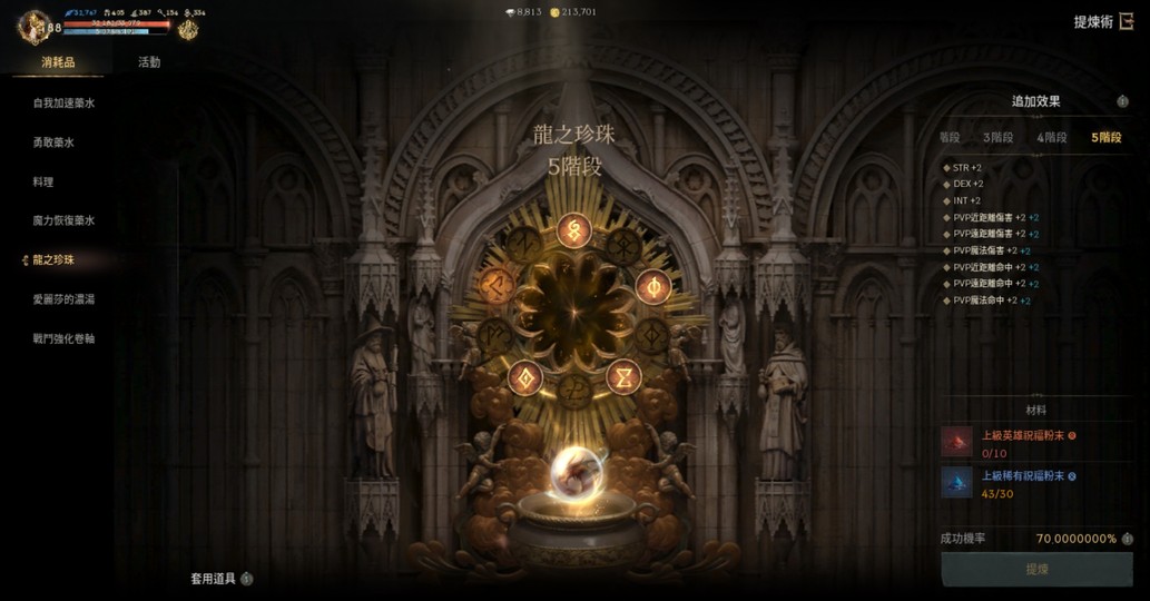 【提煉術】:加速4階、勇水5階、料理4階、魔力4階、龍珠4階、濃湯1階、戰鬥捲3階