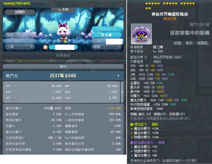 270陰陽.戰力約2000多萬(挑戰者伺服器)