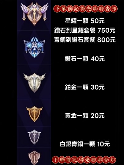 下單前請先聊聊告知想要的段位,會回覆給您價格以及需要的時間