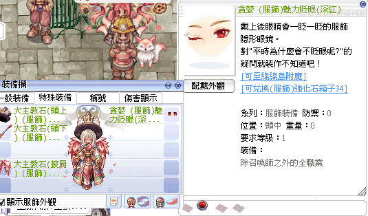 (服飾)魅力眨眼(深紅) 附魔:貪婪石(頭中)