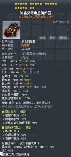 主潛能:35%BOSS26%物攻(極限次頂主流主潛能 企盡75%BOSS13%物攻)