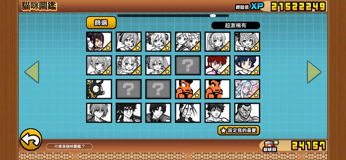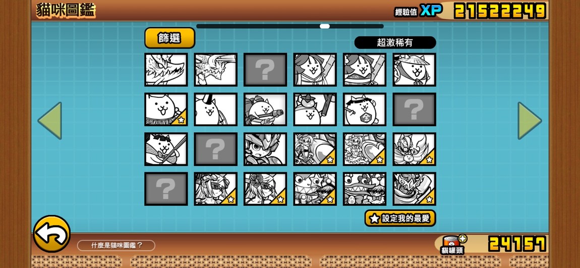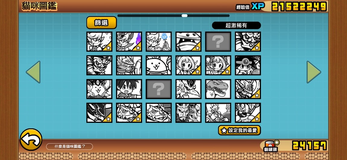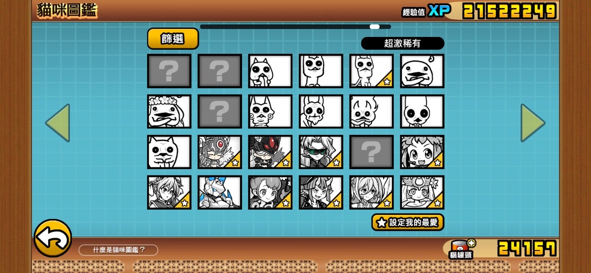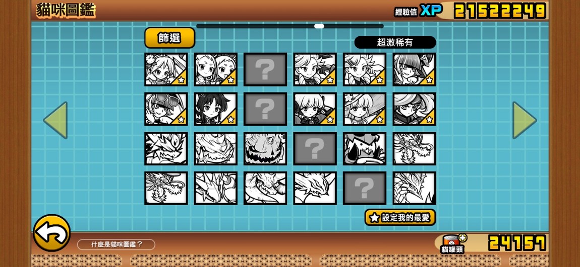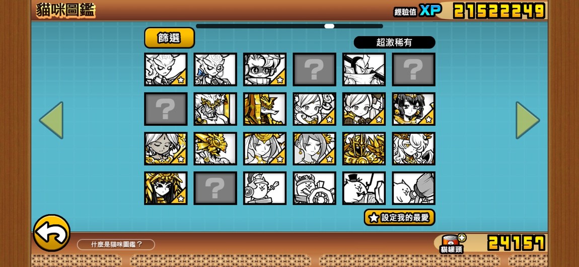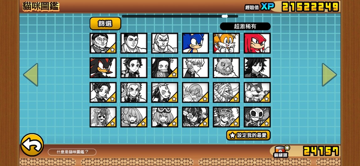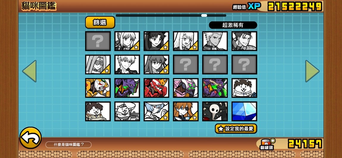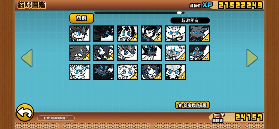 目前點開貓咪圖鑑看到的圖鑑進度: