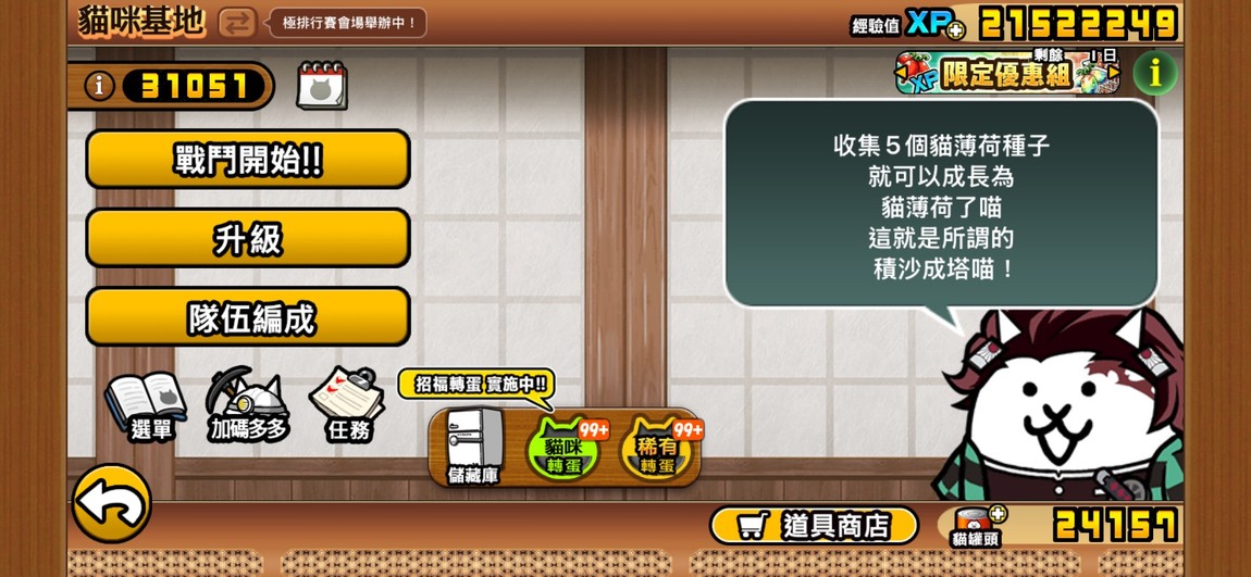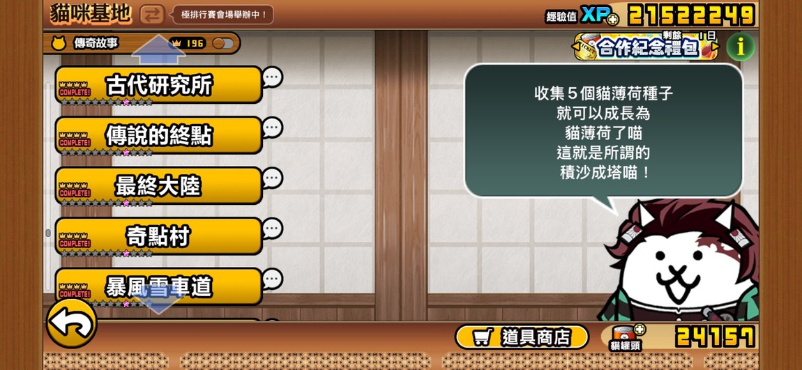 各階級貓咪80~90%的貓皆已用貓眼石提升至50等,只剩稀有貓因為比較少刷稀有貓眼石,目前大概只有55~65%的貓升到50等。