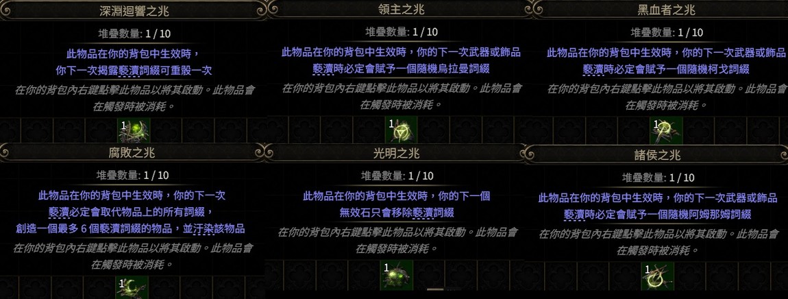 『 傳奇藥劑水 』『 背包預兆 』『 傳奇護身符 』『 裝備符文 』