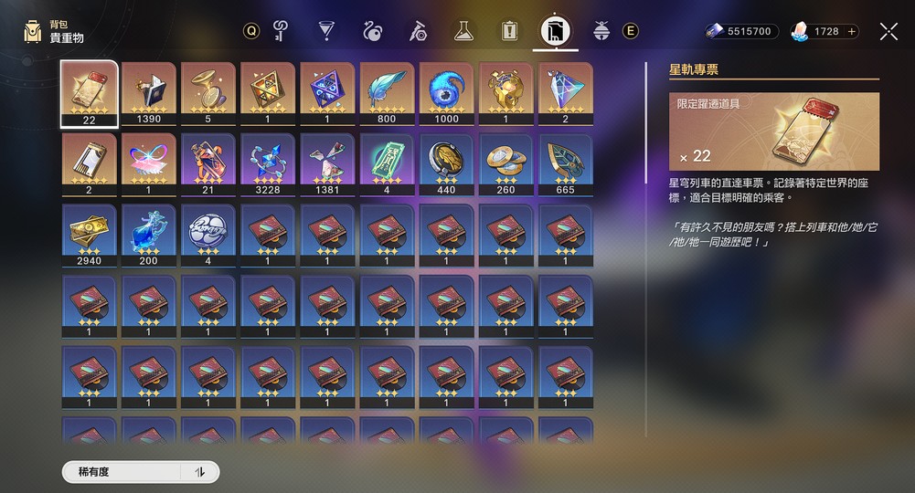 不議價1600 可直下 角色大保63 武器小保9 還有一個旅伴金靈 5個自塑塵脂 22張專票 其餘看圖 配合換綁