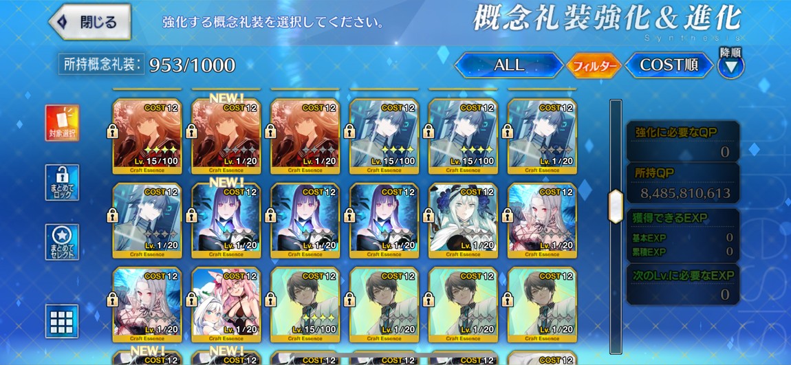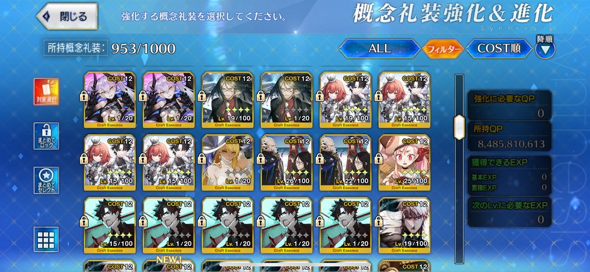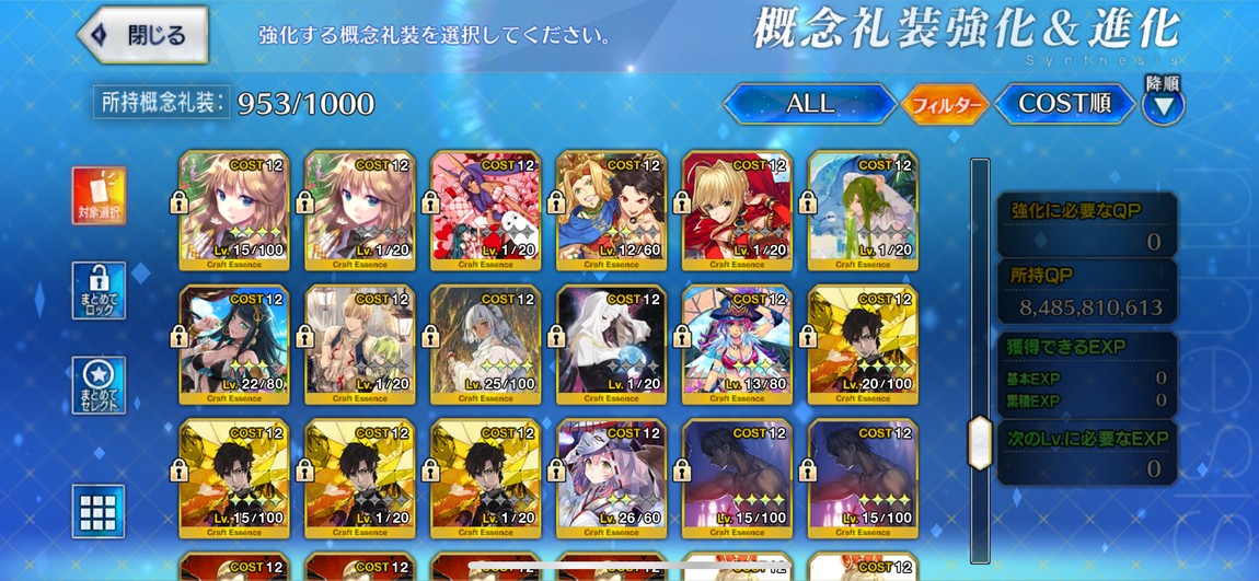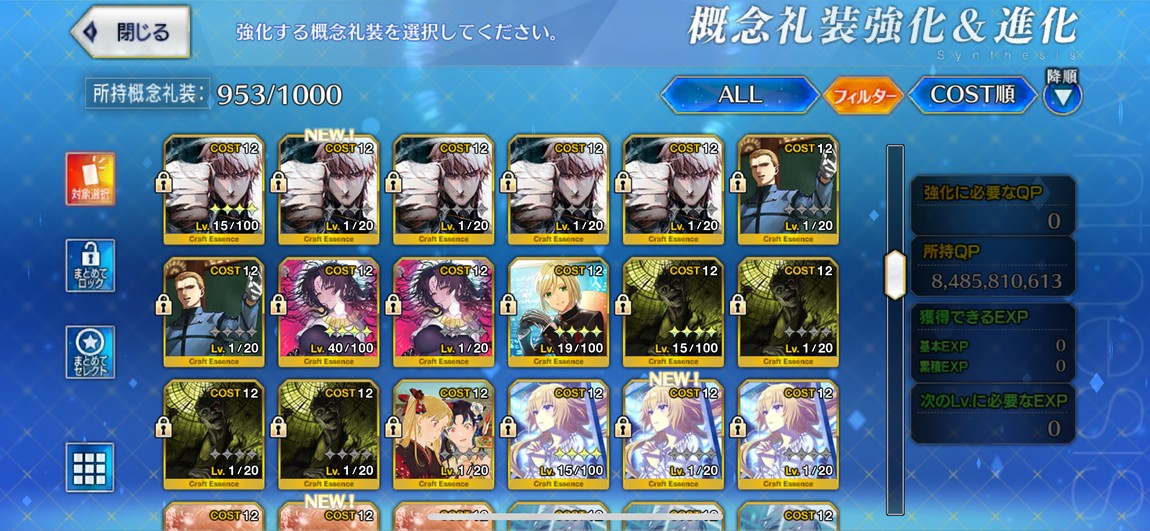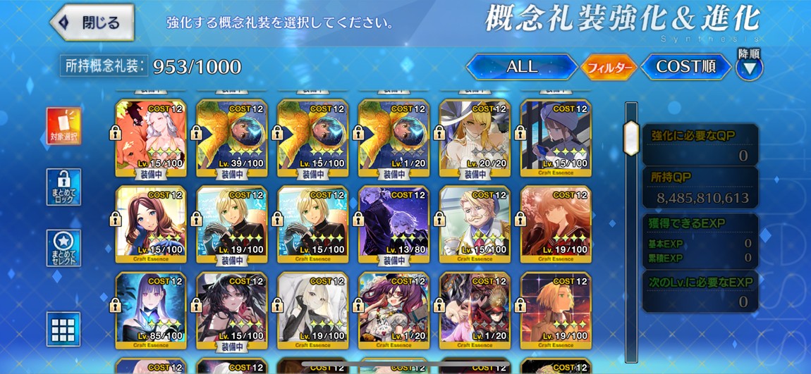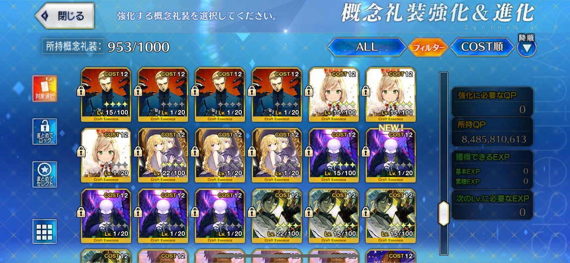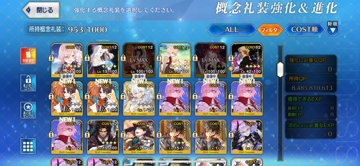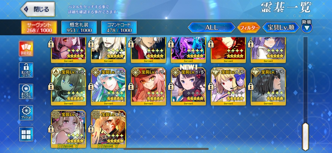 禮裝:2張黑杯突滿、2張寶石翁突滿,其他也有許多5星突破滿禮裝