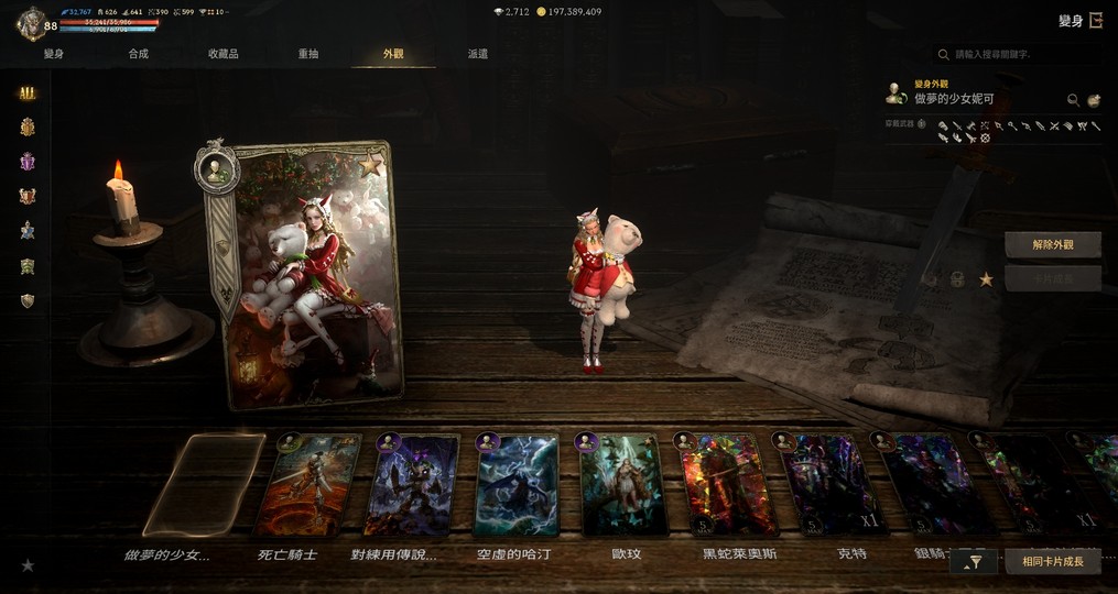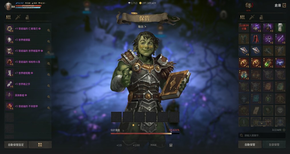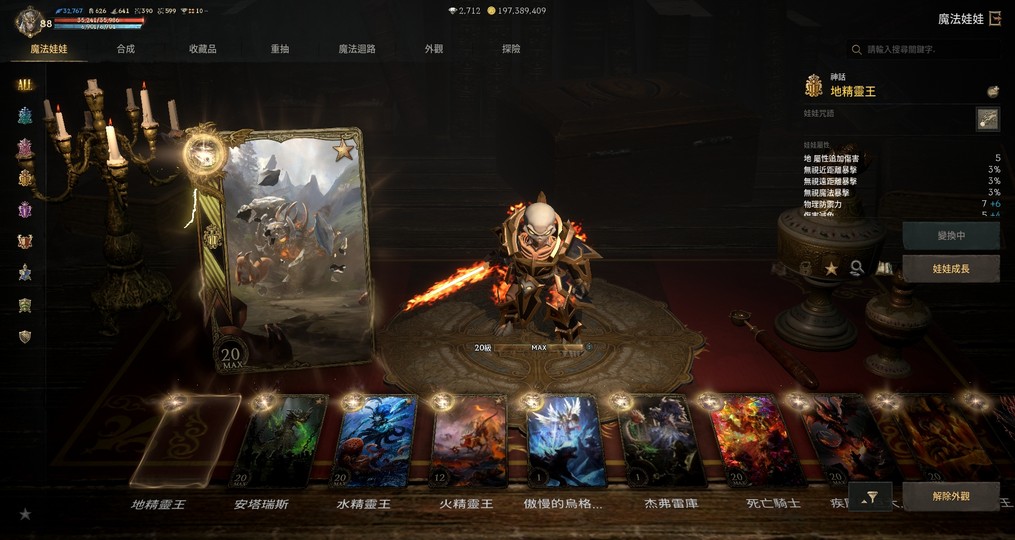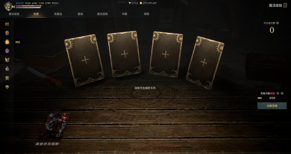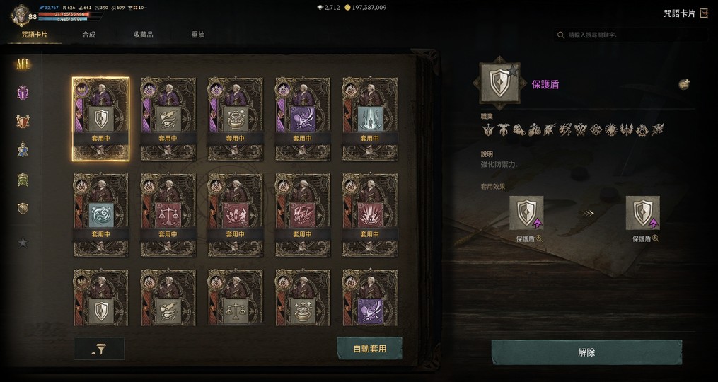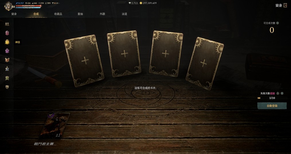 護身符:亞丁18 扭曲15 恐懼15 地獄12 殘酷19 不滅17 死神4 象塔滿 夢幻14