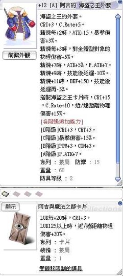 +12[A]海盜之王外套 阿吉卡 【補大量CRI,高爆傷】