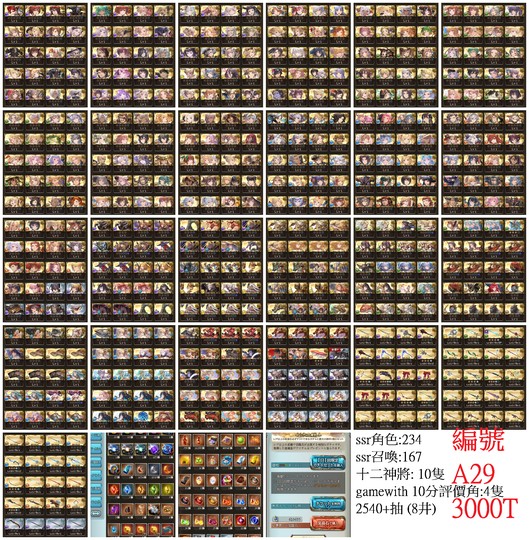 | 每組帳號均有大量石卷2000抽左右(可天井近7隻角色 = 7神將 or 限定)帳號皆為0進度 每日登入 抽免費抽 7年的存石資源號 |