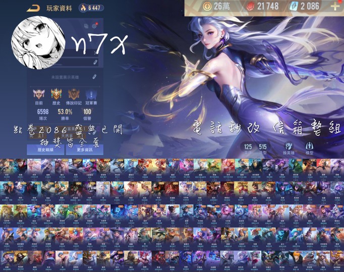 【Garena帳有綁定、星耀、V9、125英、515造】造生 大耳狗 罪冠 月落 虎杖 點卷2086盛典已開