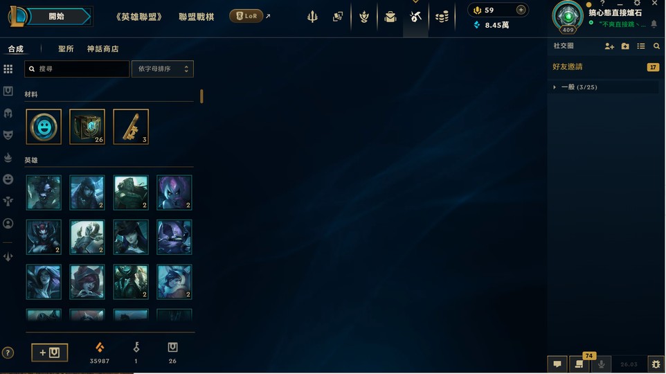上百個英雄及造型碎片可分解(價值約40000藍粉20000橘粉)
