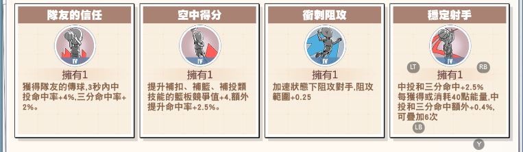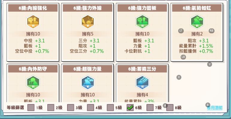 赤木:8絕 人氣:29級 4號背心 (阻攻+4 籃板+3 上籃+2) 有特效