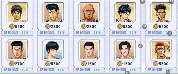 懶得打,反正基本都滿天賦 心願覺醒 : 木幕 池上 植草 神 三井 花形 長谷川 都滿9絕 其他需要可以自己升 覺醒卡很缺(不然雜魚角都可以滿)