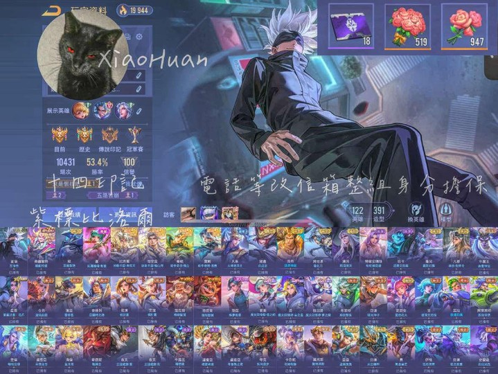 【Garena帳有綁定、先鋒傳說·光影、V9、122英、391造】五條 蘇惡魔 新年 異色堇 礦能森圖 多造