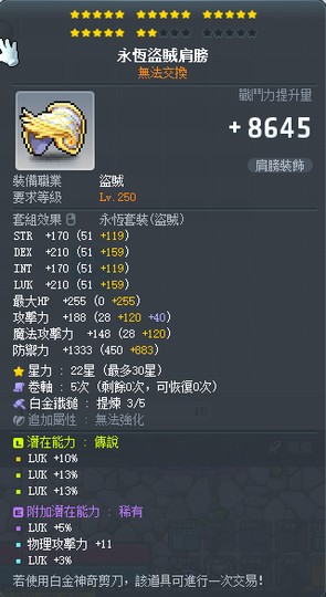 【永恆盜賊肩膀】22星36%幸永恆盜賊肩膀 附加稀有三排 白3全v捲~
