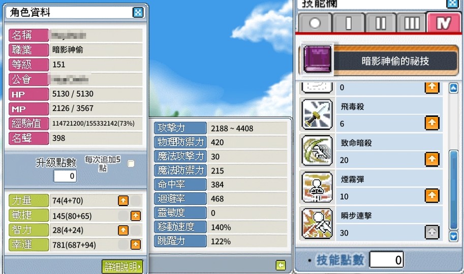 【151等、神偷_暗影神偷】稀有「力賊」 瞬步30 雪表5000 裝備物資齊全 練功正收益 自出價格