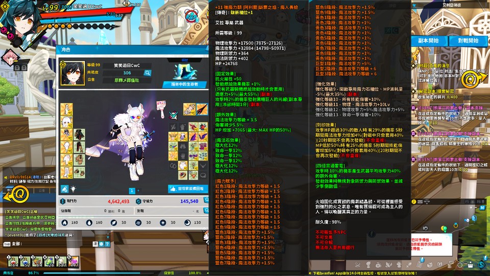 【1史詩武器、42王牌武器、34王牌角色】急售 樂豆本帳 CSO艾爾之光 兩+11鎮魂 一套+10泰納 306共鳴