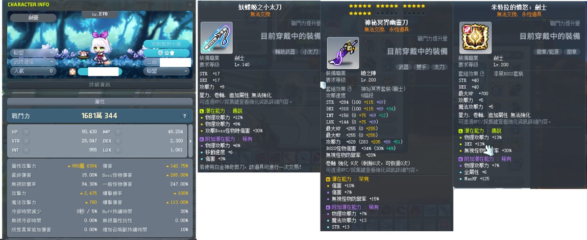 271陰陽.戰力約2000多萬(挑戰者伺服器)