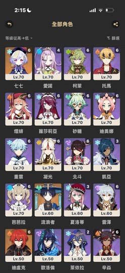 【女、70等、50金角、50金專】崩鐵7滿命300抽+原神14滿命250抽