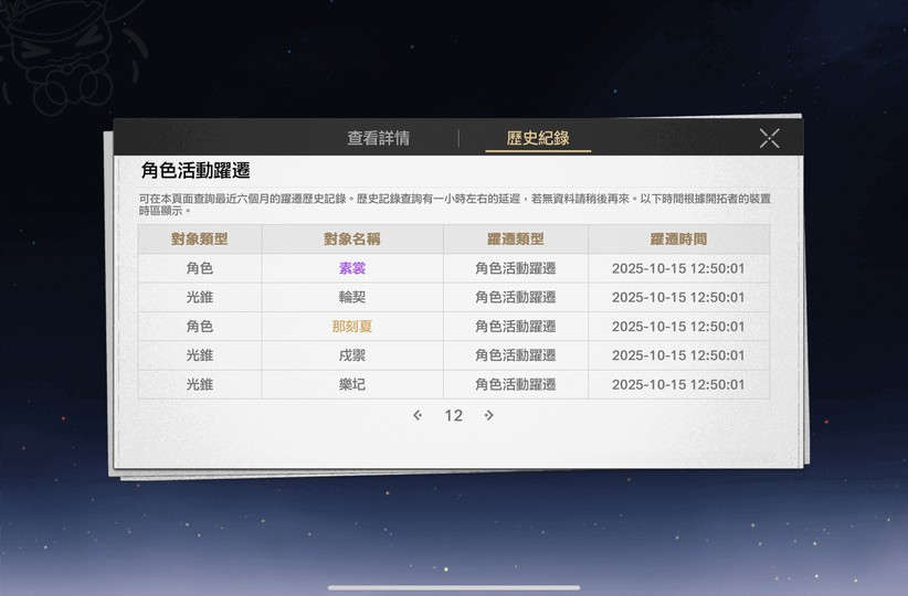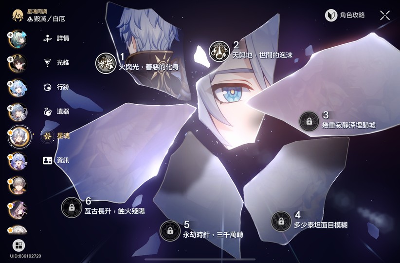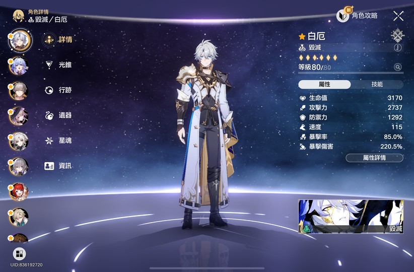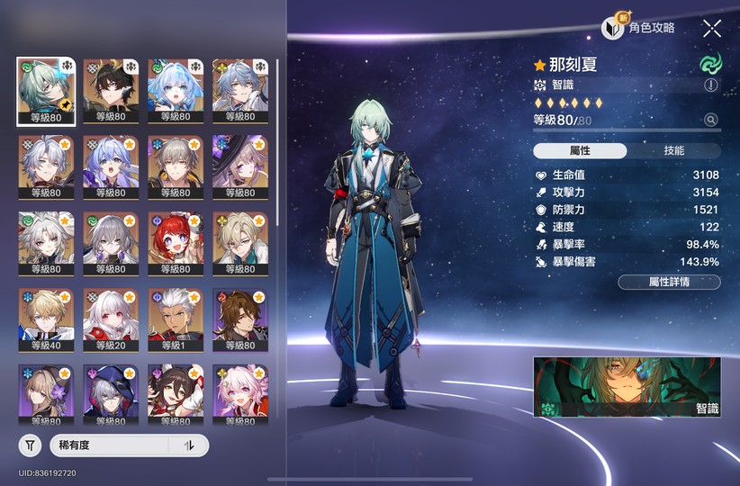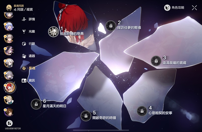 角色情形如圖,都大畢業了,很多活動跟主線沒清,寶箱也沒拿