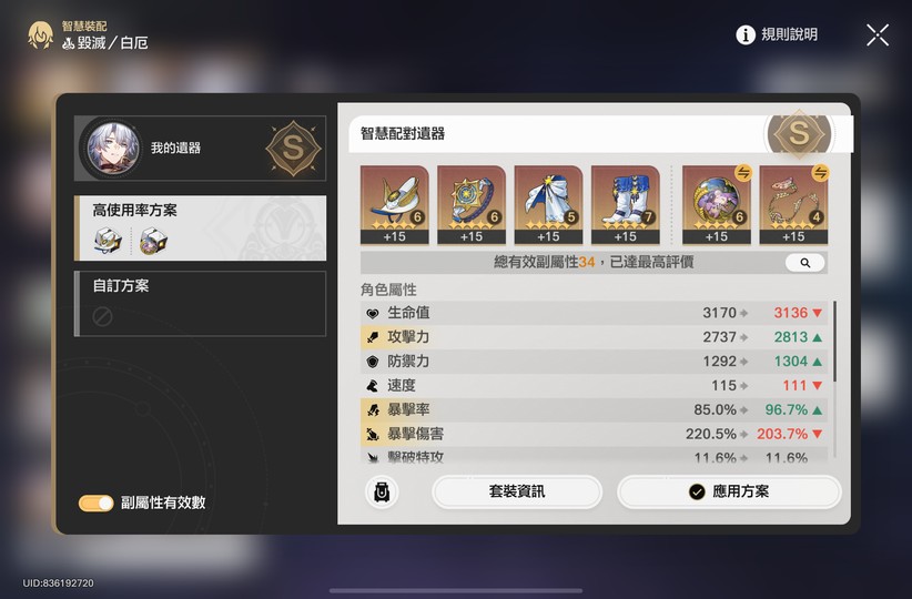 【男、60等、1金角、1金專】21白厄21飛宵10刻律10鳥10緹寶,練度大畢業如圖,輕鬆auto深淵