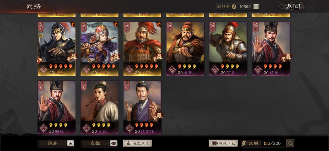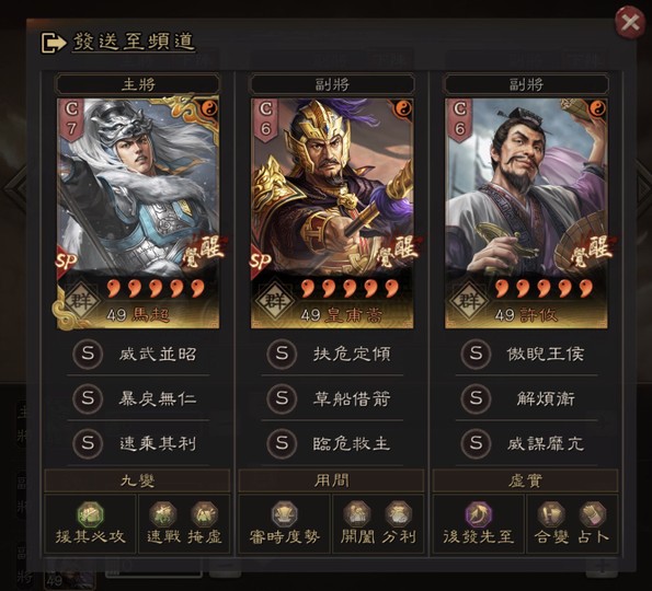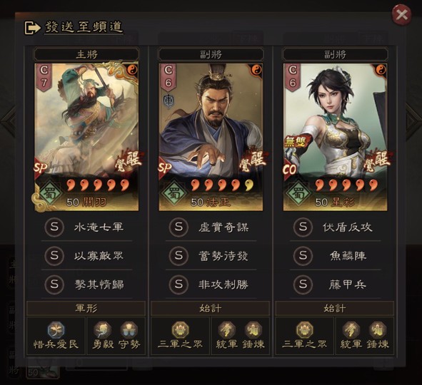 武聖、無雙、雄才、昭烈、虎峙、周旋