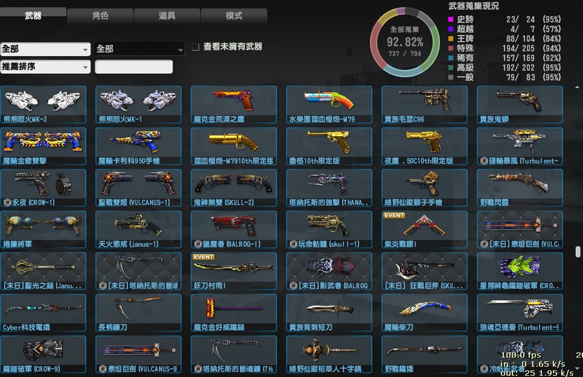 稀有典藏武器、塗料武器 、稀有稱號、物品甚多 有些未截圖到歡迎私訊聊聊~~