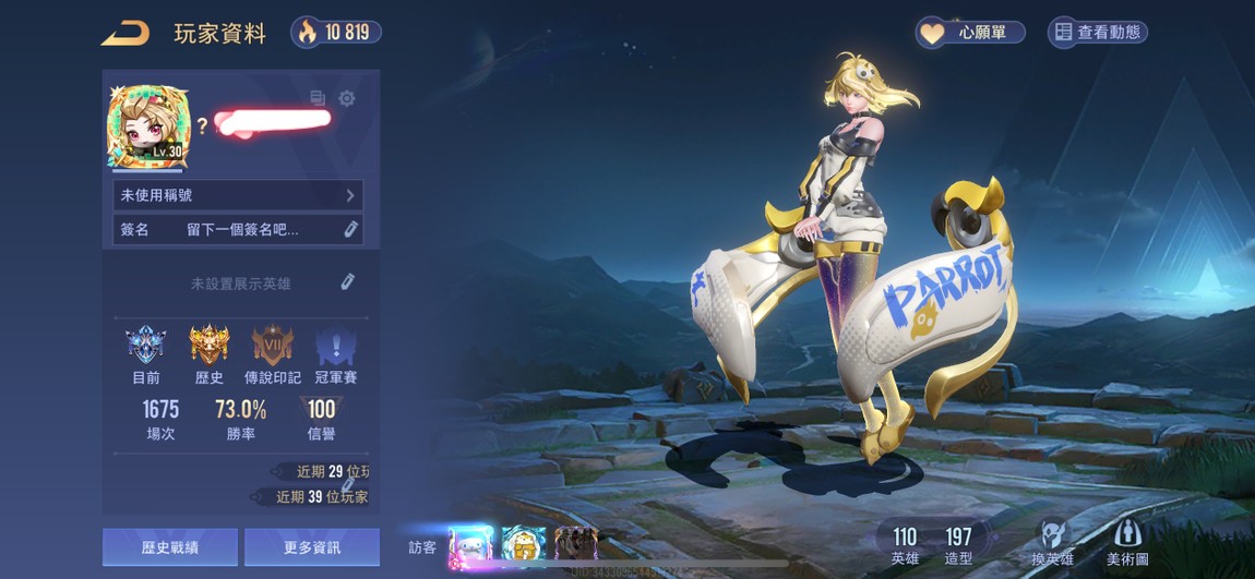 【Garena帳有綁定、鑽石、V6、110英、197造】歷史百星 新年比洛爾 大耳狗 蜜莉姆
