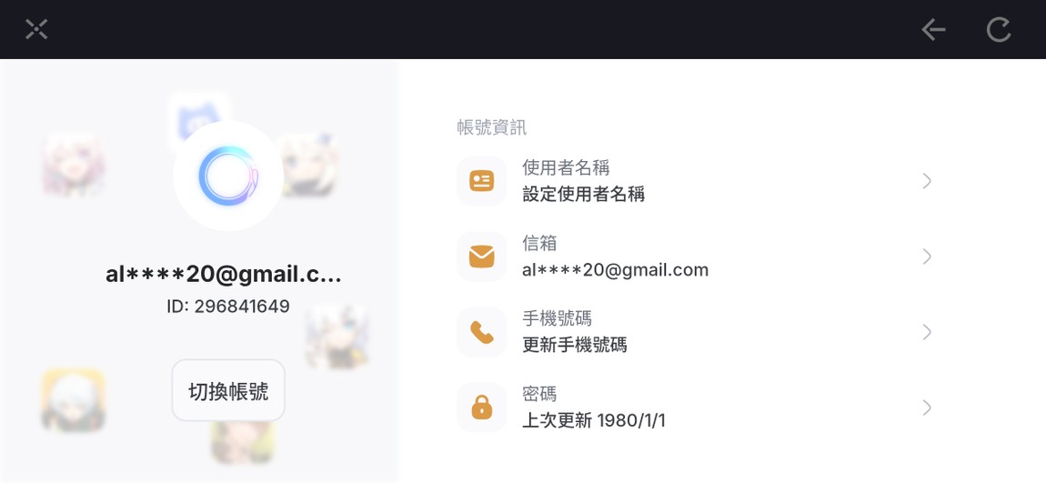 物品種類: 帳號