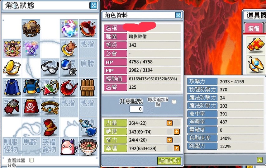 【142等、神偷_暗影神偷】142刀賊 瞬步30 炎盔 可直接看圖 另可以加購祈禱
