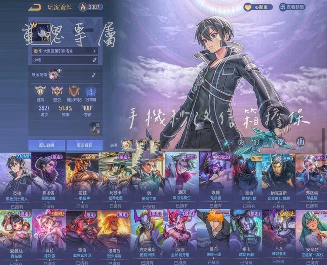 【Garena帳有綁定、鉑金、V6、69英、133造】桐人 星際佛 多直購盛典