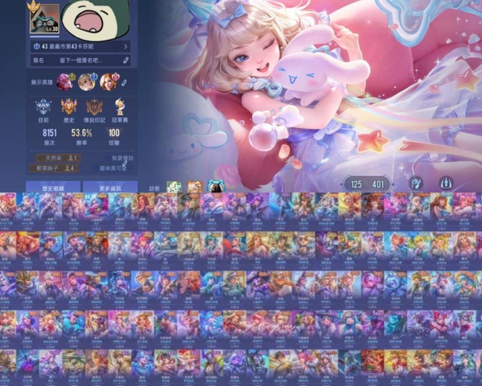 【Garena帳有綁定、璀璨傳說、V8、125英、401造】歷史璀璨 401造 多抽獎造型 大耳狗芽沉香女團莉莉安天啟羅爾性感月落葉那