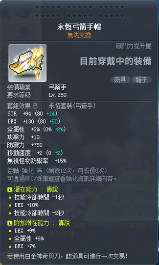 【永恆弓箭手帽】雙傳 附加大三排 967 三排敏