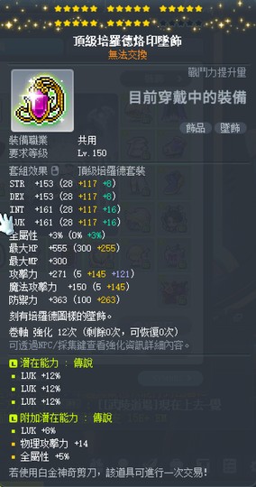 【頂級培羅德烙印墜飾】】雙傳25星36%幸頂墜 附加85幸+14攻2.5排 白5頂級培羅德烙印墜飾