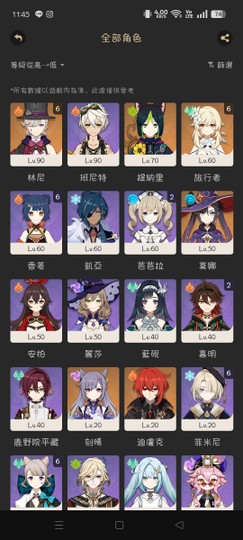 【女、55等、7金角、1金武】6+1林尼 提納里 莫娜 刻晴 迪盧克
