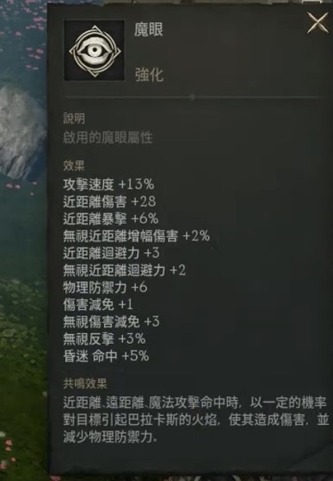 攻速13%/近傷28.近爆6%.近3.物防6.傷減1