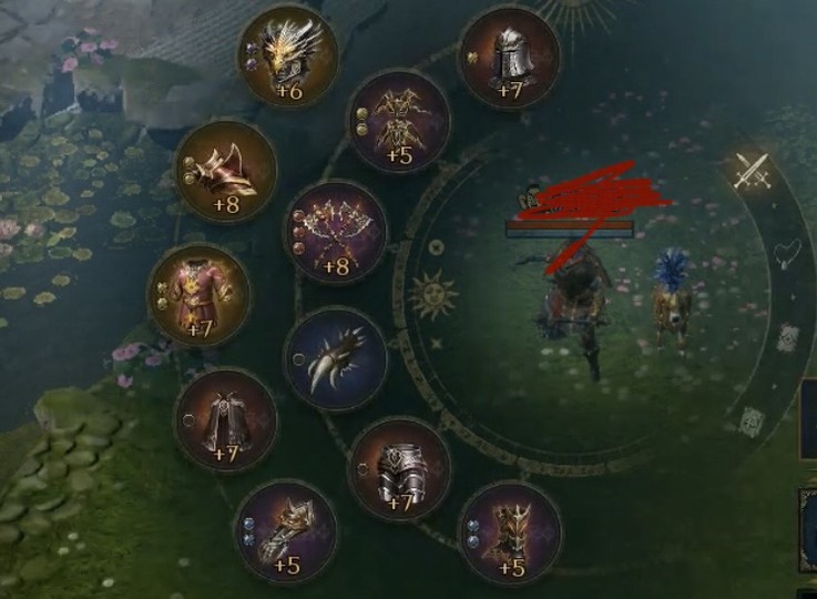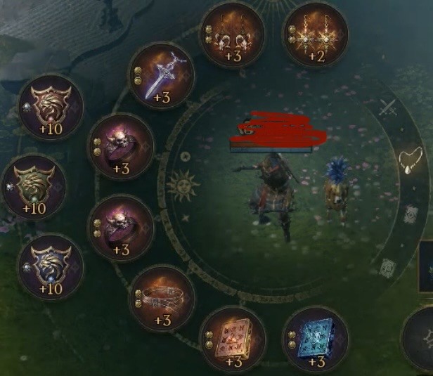 刻印紅裝:+3怨恨耳環(11)+2裂痕耳環(11)+3鬥士項鍊(21)+3阿爾戒指(11)+3泰坦皮帶(21)+3力量石碑(11)+3忍耐石碑(11)