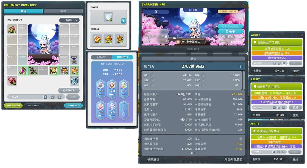 【281等、蓮、4404戰地、460AUT】💖頂級兔子 雙傳附加三物創世有武公 雙傳附加三物米特拉 皇家VIP半年以上💖