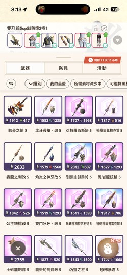 【356等】背包87250,80把10-5武器,近20把風格強化滿,滿足你魔物獵人的需求!