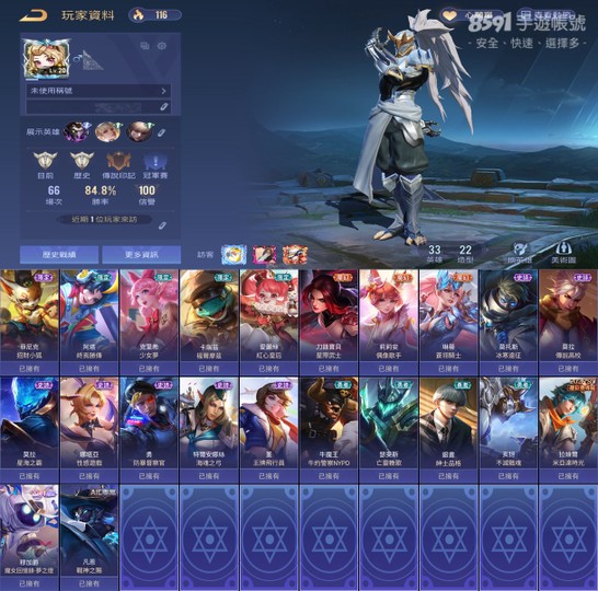 還在新手階段,可在免費領取15隻英雄,總共48英雄,聖典43等