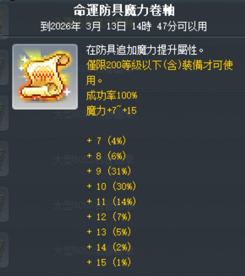 如圖,命運防具魔力卷軸,均10攻以上的好東西