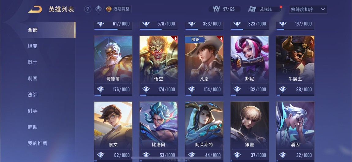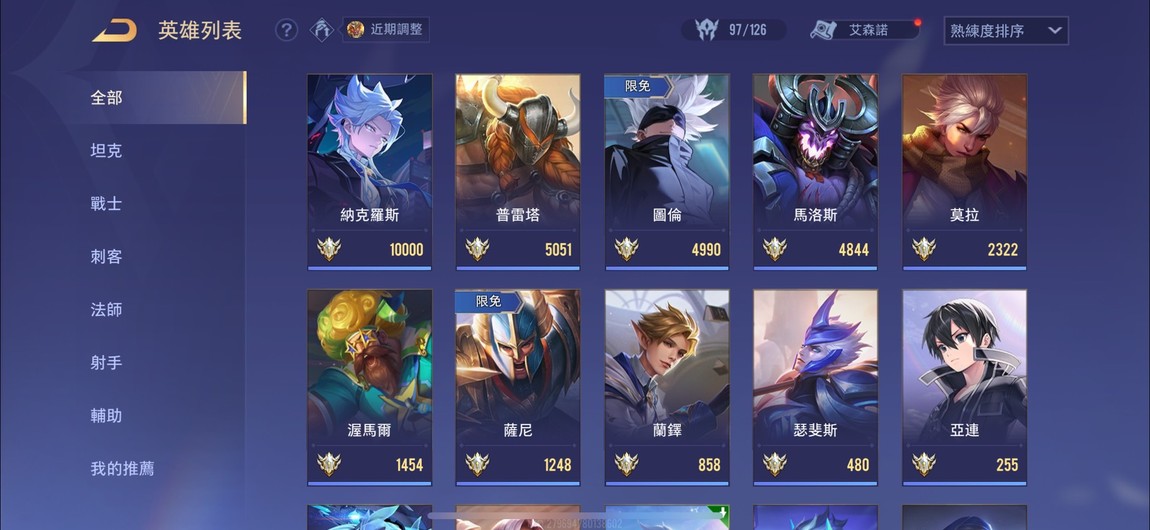 【Garena帳有綁定、星耀、V8、98英、149造】五條/納克次元/文鰩/利姆路/蜜莉姆/一代桐人/基德(缺按鍵和擊殺播報)。
