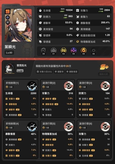 主要角色練度都小畢業,其餘角色練度可看圖。