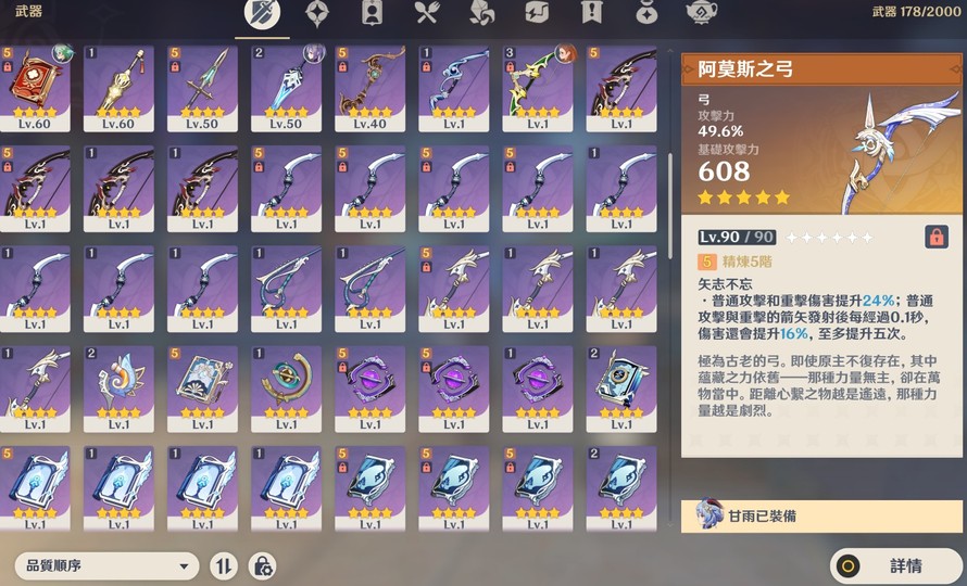 【女、60等、23金角、24金武】6+5雷神雷電 6+5甘雨 6+5優菈 滿命公子達達利亞 2命杜林 多抽