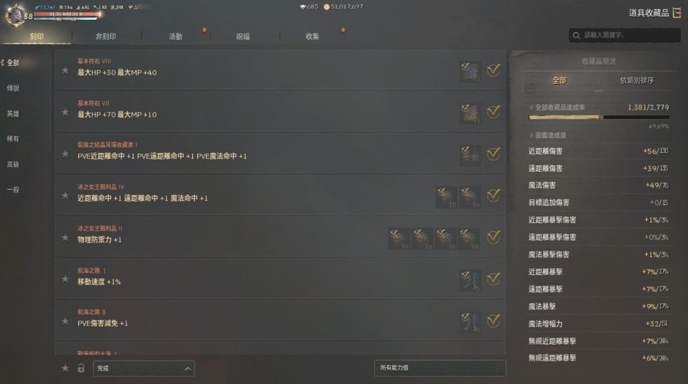 PVE魔命107 PVE命中56 職業命中43 職業抗性39