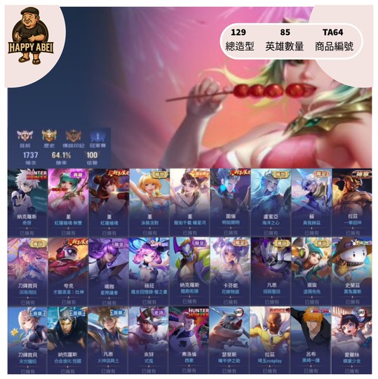 【Garena帳有綁定、青銅、無VIP、85英、129造】[分期/直購]快樂阿北遊戲館~月繳700起主打納克奇犽堇典藏新年泳裝拉茲一拳真我