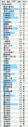 雙手200 八卦200 雁行200 無影190 反定100