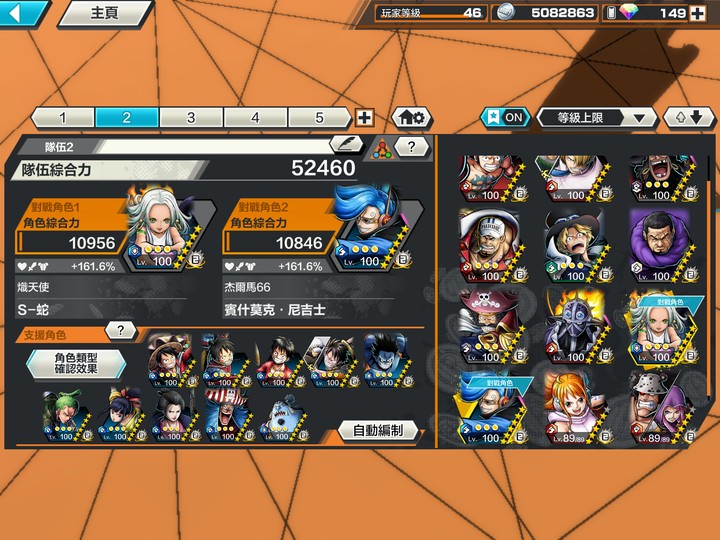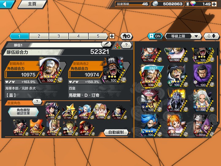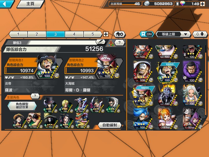 【46等】5超滿,新黑鬍子,薩波,黑羅傑,S蛇,赤犬,三色支援160%,沒綁定
