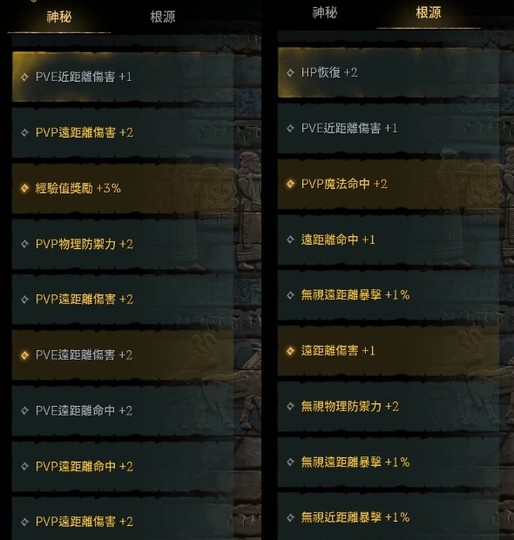 護身符:亞丁20、扭曲16、恐懼18、地獄20、殘酷17、不滅20、死神9、象牙20、夢幻17