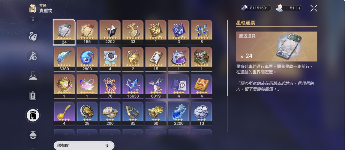 五星角色與五星專武數量充足,角色多數已達高等級培養,具備完整隊。伍架構。